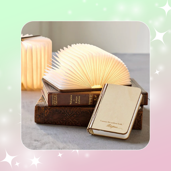 Level up your next reading sesh with the help of this gorgeous book-shaped lamp, which comes complete with an apt quote from Thomas Jefferson on the front of it: “I cannot live without books.”
