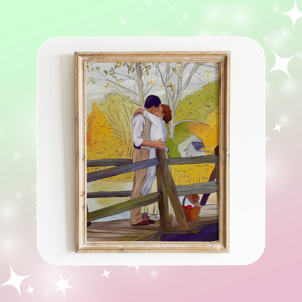 This digital art captures the pivotal moment Anne and Gil embrace, with the beauty of Avonlea’s scenery behind them.