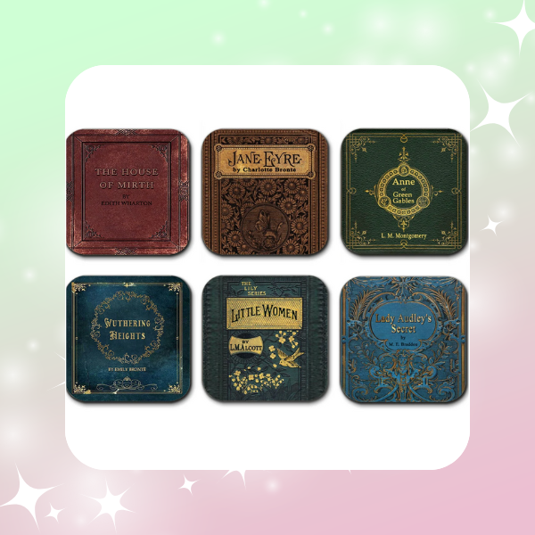 These coasters all feature books “written by women, for women, and about women”: Jane Eyre, Anne Of Green Gables, Wuthering Heights, Little Women, The House of Mirth, and Lady’s Audley’s Secret.